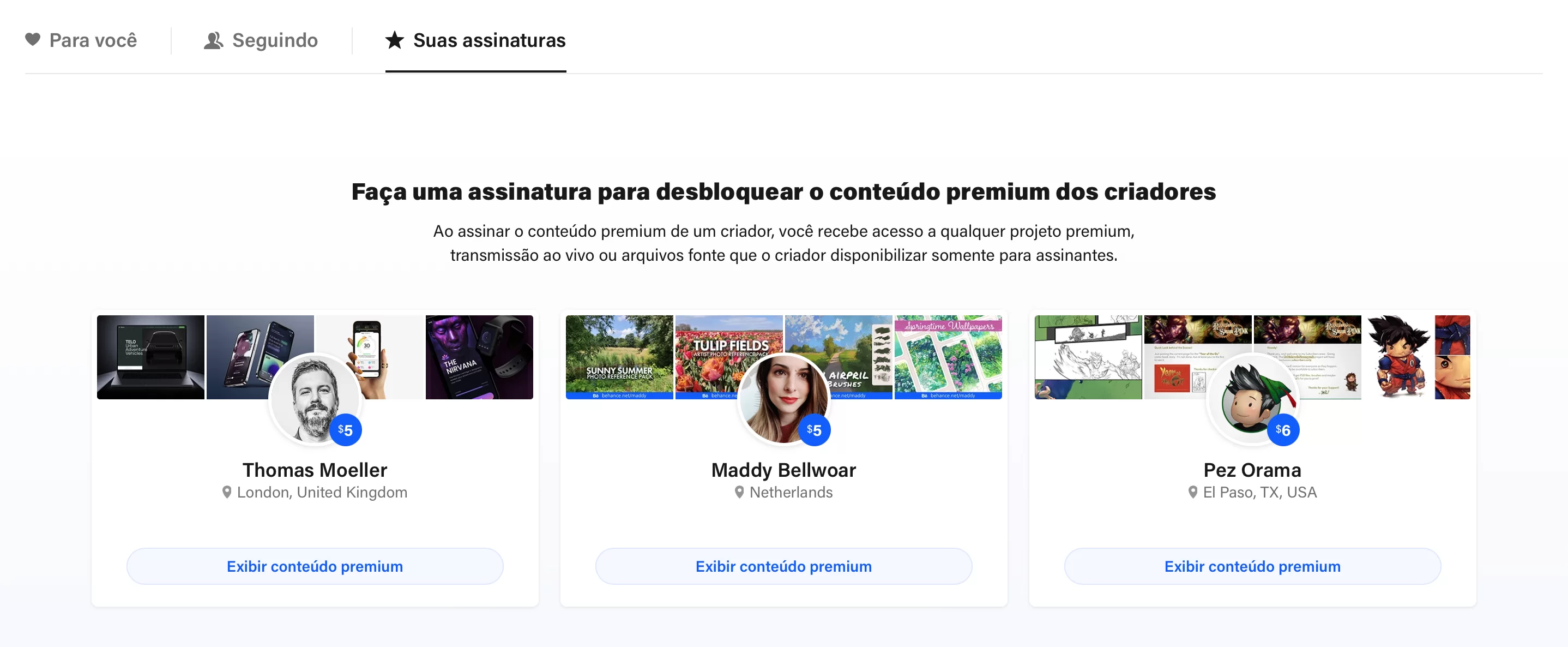 O Behance sempre procura novas maneiras de apoiar os artistas trazendo novos recursos e funcionalidades, e uma dessas possibilidades é um recurso chamado “Assinaturas de Artistas” (ou “Artist Subscriptions”, em inglês), que permite aos usuários da plataforma apoiarem financeiramente seus artistas favoritos por meio de uma assinatura paga mensal.